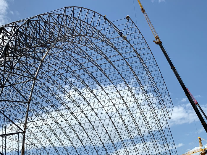 (2)网架加工前应对现场尺寸进行复测,确认无误后方可进行加工、安装;网架制作、运输、安装应遵守《空间网格结构技术规程》JGJ7-2010、《钢网架普兰店螺栓球节点》JG/T 10-2009、《钢网架普兰店螺栓球节点用高强度螺栓》 GB/T 16939-2016、《普兰店钢结构普兰店工程普兰店施工规范》 GB50755-2012、《普兰店钢结构普兰店工程普兰店施工质量验收标准》 GB50205-2020。